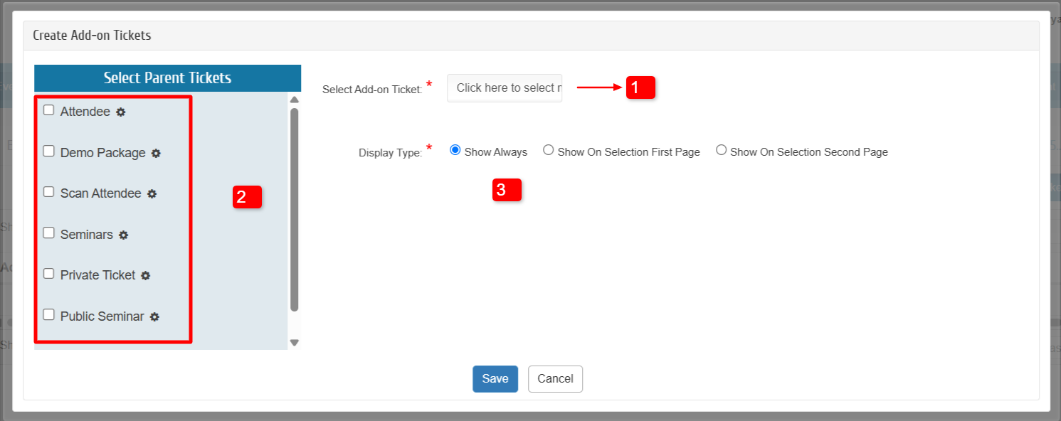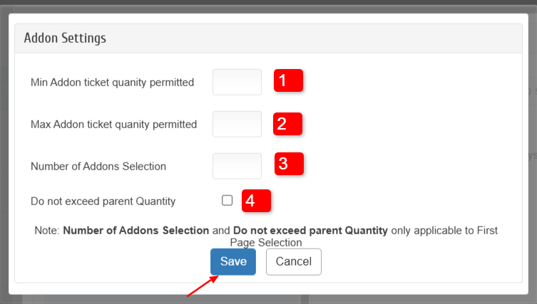 - If you have multiple Add-on tickets for a parent ticket, you can set a limit for it selection.