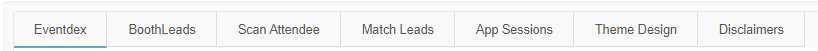 Step 2: “Eventdex“, “BoothLeads“, “Match Leads“, “App Session“, “Theme Design“, and “Disclaimers” category tabs appear on the screen. Event Admin can make changes in the display settings of these purchased tickets according to its use.